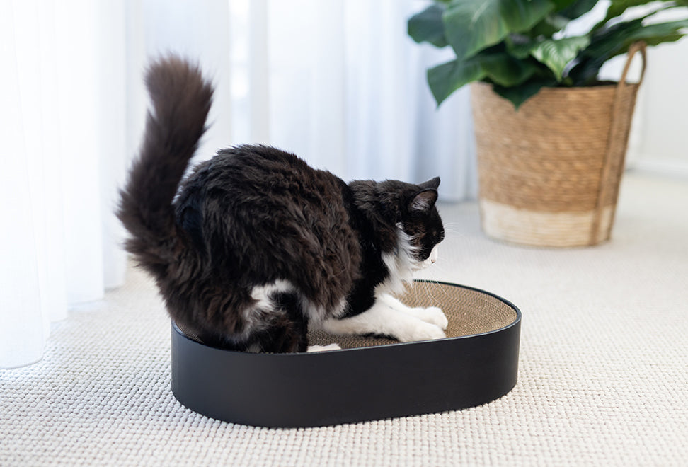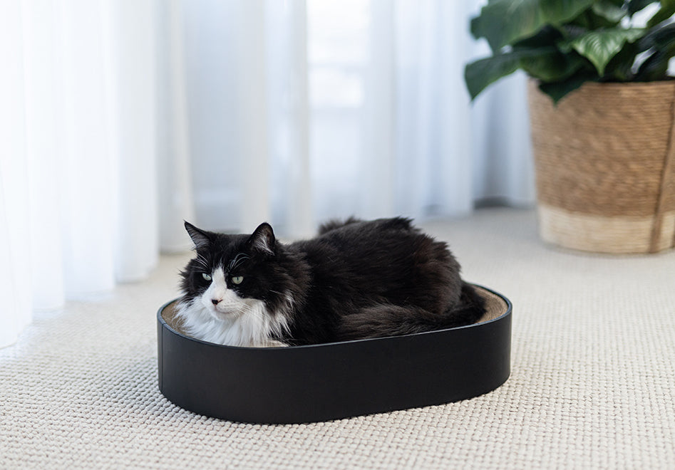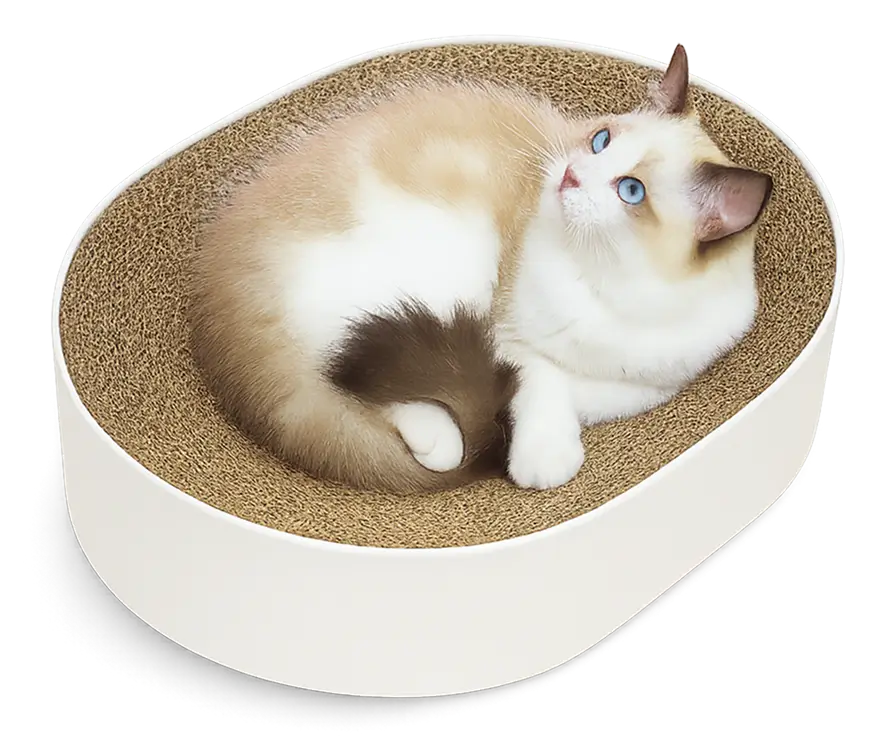 With its smooth oval shape and sturdy cardboard core, The Cat Nest is built for serious napping, lounging and daily claw sessions.